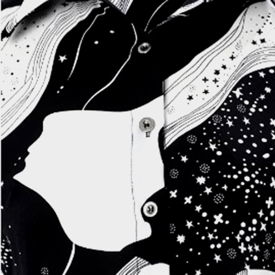 The classic black and white combination exudes timeless beauty, while the distinctive print adds a unique flair to your outfit. Whether you are dressing for a formal event or aiming for a stylish everyday look, this blouse is your perfect choice.